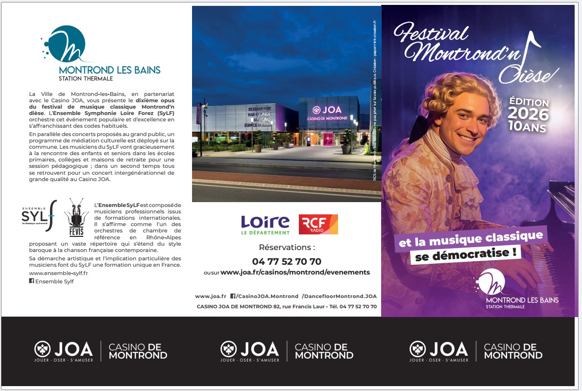 La Ville de Montrond-les-Bains, en partenariat avec le Casino JOA Montrond-les-Bains, vous présente la 8ème édition du festival de musique classique Montrond’n dièse.